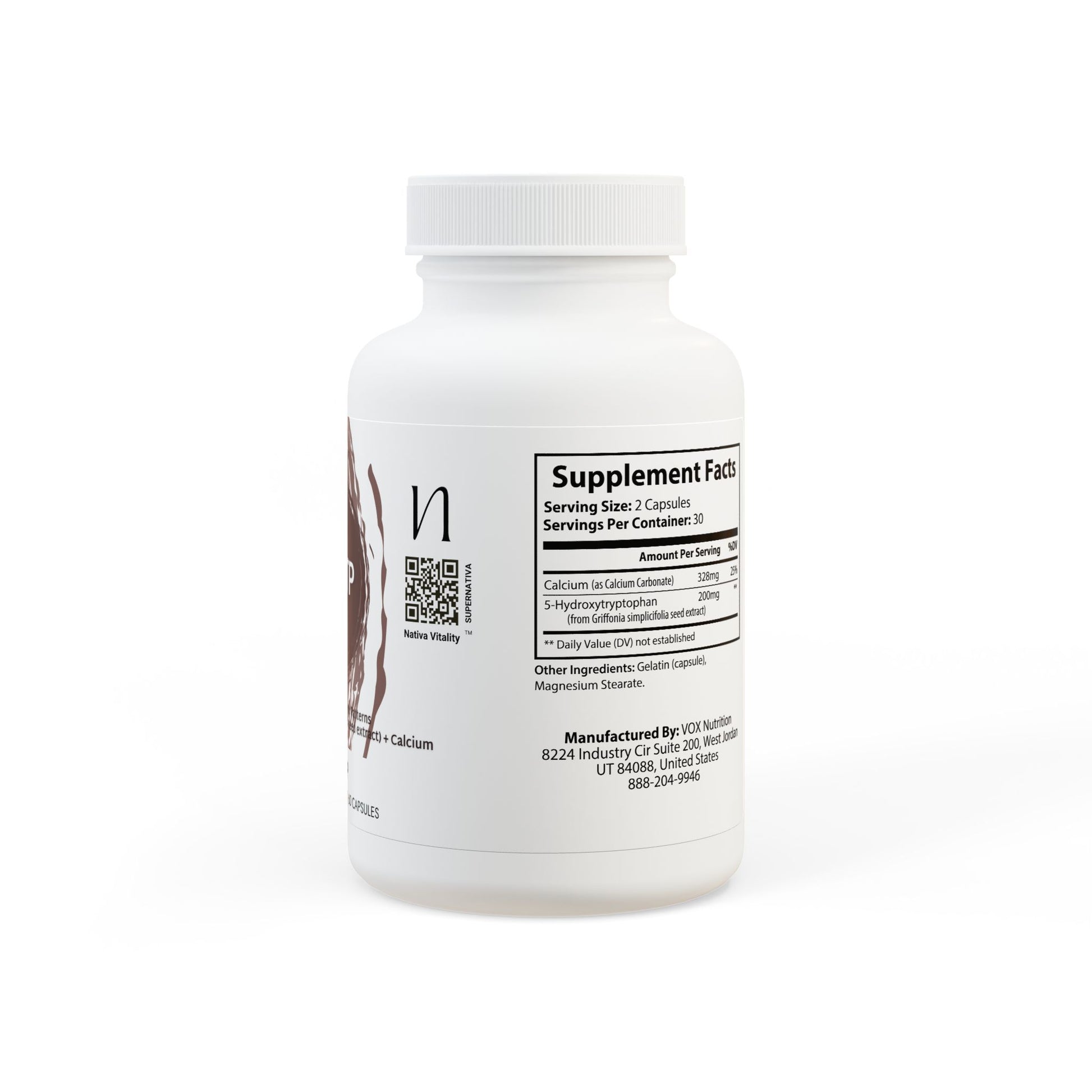 Calcium (as Calcium Carbonate), 5-Hydroxytryptophan (from Griffonia simplicifolia seed extract).