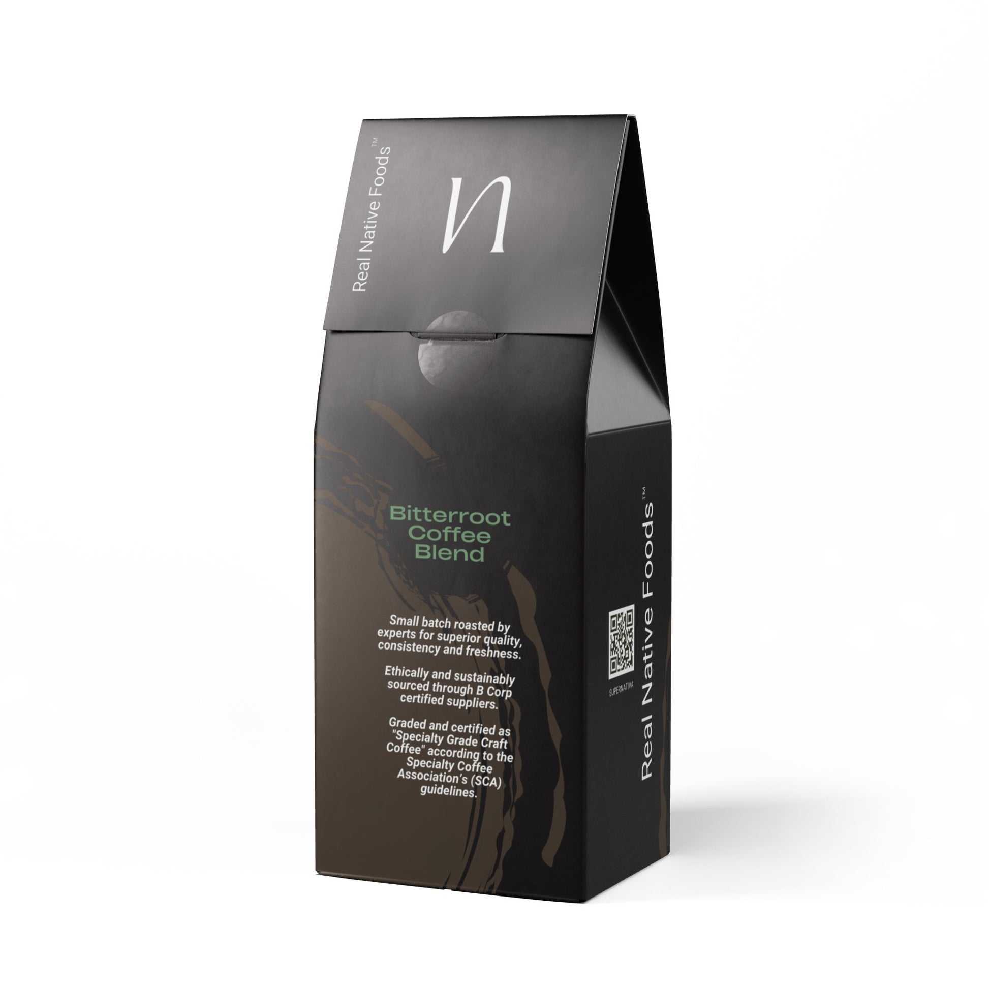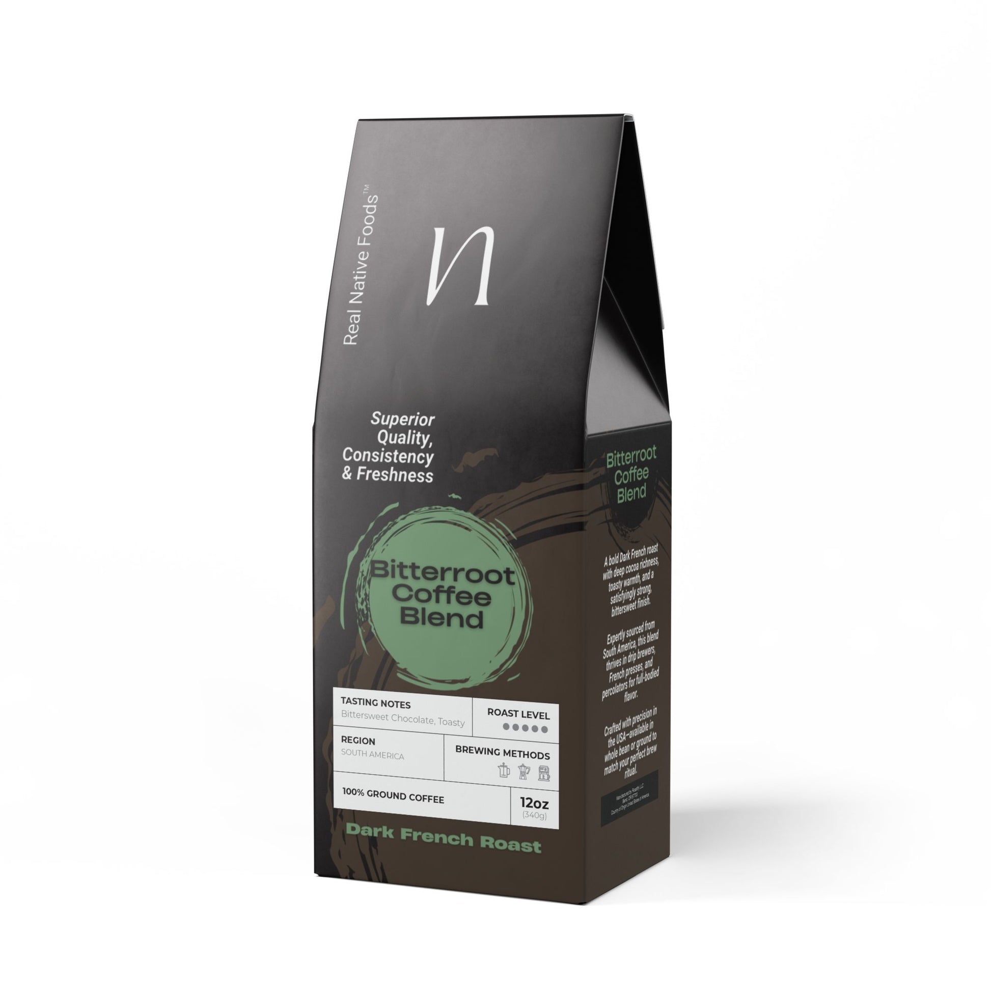 If you love coffee with a strong personality and deep flavors then the Bitterroot Coffee Blend is made for you. This 12oz package features a Dark French roast, delivering a bittersweet and toasty flavor profile with a strong finish along with rich flavors of cocoa and toasted nuts. Sourced from South America, this blend is meant to be enjoyed by brewing in your drip coffee maker, French press, or percolator. Available in whole bean and ground options. Roasted with care in the USA from ingredients sourced worldwide.