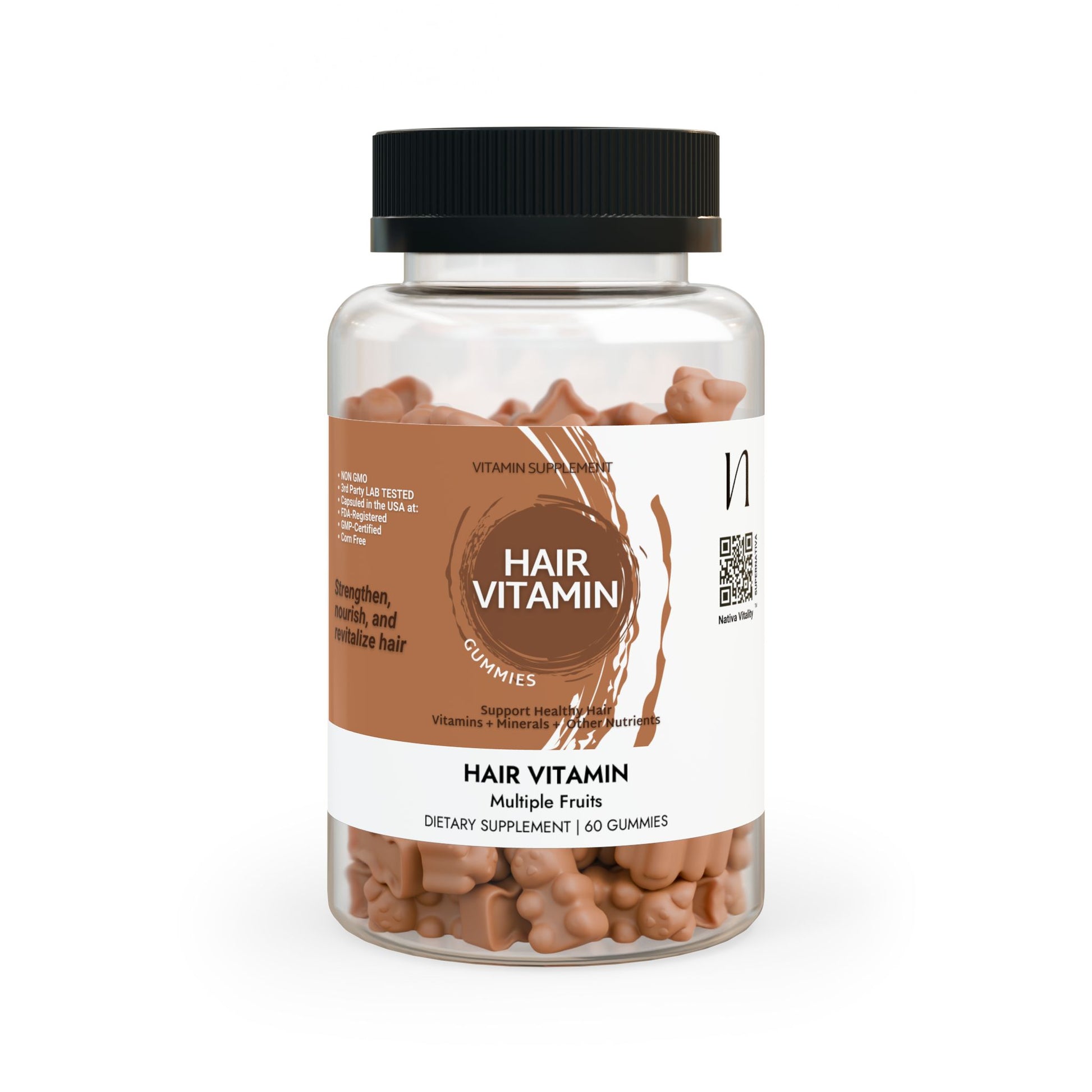 Support strong, healthy hair with our Hair Vitamin Supplements, packed with essential vitamins, minerals, and biotin to promote growth, shine, and scalp health. Enriched with zinc, folate, and inositol for optimal nourishment.